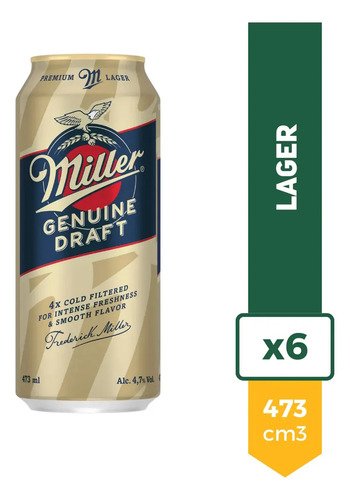 Cerveza Miller Genuine Draft 473ml X6
