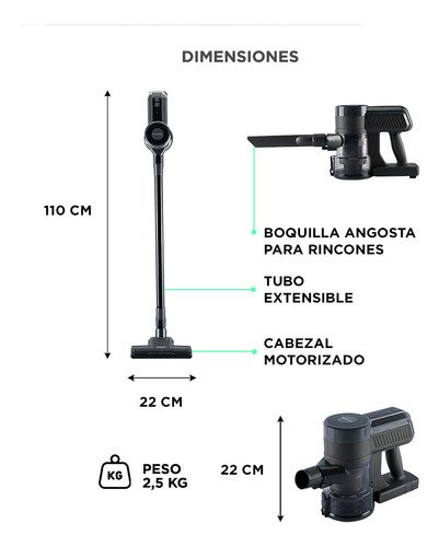 Su diseño inalámbrico permite una mayor libertad de movimiento, eliminando la necesidad de estar cerca de una toma de corriente. Con una duración de batería de 35 minutos, podrás realizar tareas de limpieza sin interrupciones, alcanzando cada rincón de tu hogar con facilidad.