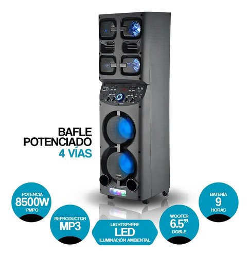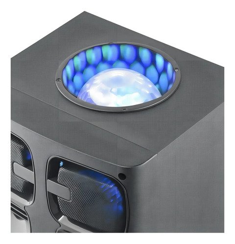 Este modelo incluye características que mejoran la experiencia del usuario, como un control remoto para un manejo cómodo y ruedas que facilitan su transporte. Aunque no es a prueba de agua, su construcción robusta lo hace apto para uso en exteriores, permitiendo llevar la fiesta a cualquier lugar. Además, cuenta con luces LED que añaden un toque visual a tus eventos, creando un ambiente festivo.