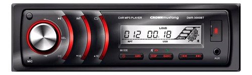 El reproductor digital multimedia Crown Mustang DMR-3000BT permite reproducir archivos MP3 mediante lector USB y tarjeta SD, además de contar con conexión Bluetooth para transmisión inalámbrica de audio y función manos libres. Incorpora panel frontal desmontable, sintonizador digital AM/FM estéreo y display LCD con indicador de nivel. Es compatible con formatos MP3, WMA y WAV. Dispone de ecualizador parametrizado con ajustes de fader, graves y agudos, función Loudness para mayor intensidad sonora y potencia máxima de 52W x 4 canales. Cuenta con entrada frontal USB, AUX IN, salida de línea RCA trasera y memorización de estaciones de radio. Producto de origen China.
