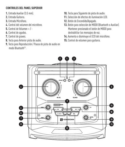 Parlante Bafle Potenciado Ken Brown Monsterbox 3 Vias Woofer Color Negro Bluetooth