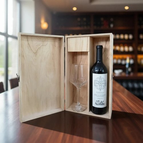 El estuche de madera no solo resalta la elegancia del combo, sino que también lo convierte en una opción perfecta para obsequiar o para deleitarse en casa. La copa y el cepillo están diseñados para realzar la experiencia de degustación, permitiendo apreciar cada matiz del vino de manera óptima.