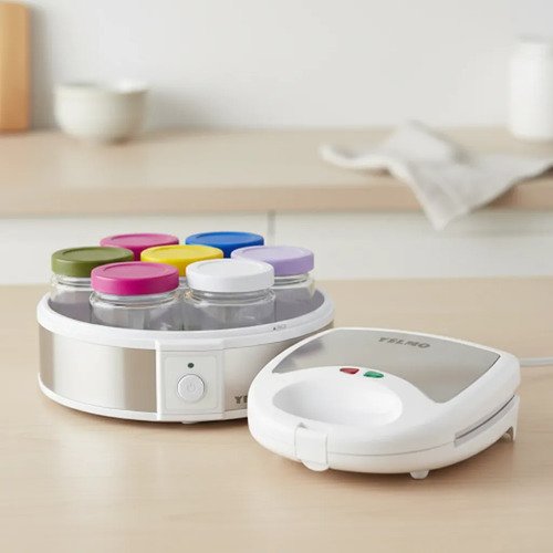 Este conjunto optimiza la vida cotidiana permitiendo preparar en casa yogures naturales y saludables con la yogurtera, fomentando una alimentación nutritiva y personalizada. La capacidad de siete frascos facilita compartir el yogur o almacenarlo para varias jornadas. Paralelamente, la sandwichera multifunción posibilita preparar desde desayunos tradicionales como sándwiches y waffles hasta dulces como donuts y bagels, todo en un mismo aparato, ahorrando espacio y dinero. Ambos productos cuentan con materiales de calidad que garantizan durabilidad y fácil limpieza, facilitando el mantenimiento de una cocina ordenada y eficiente. La combinación de estos equipos promueve una alimentación casera más saludable y divertida, estimulando la creatividad culinaria y el ahorro en gastos de comida fuera de casa.